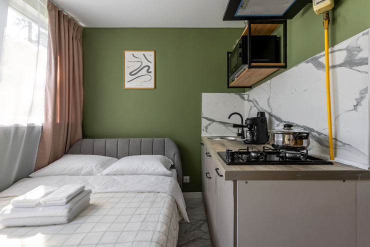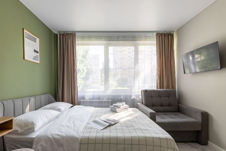 Самолетом до аэропорта Пулково (г. Санкт-Петербург), далее на рейсовом автобусе №39 до остановки «ст. м. Московская», далее на метро до станции «Проспект Просвещения», далее на рейсовом автобусе №121 до остановки «ул. Симонова», далее пройти пешком 260 м до апартаментов.